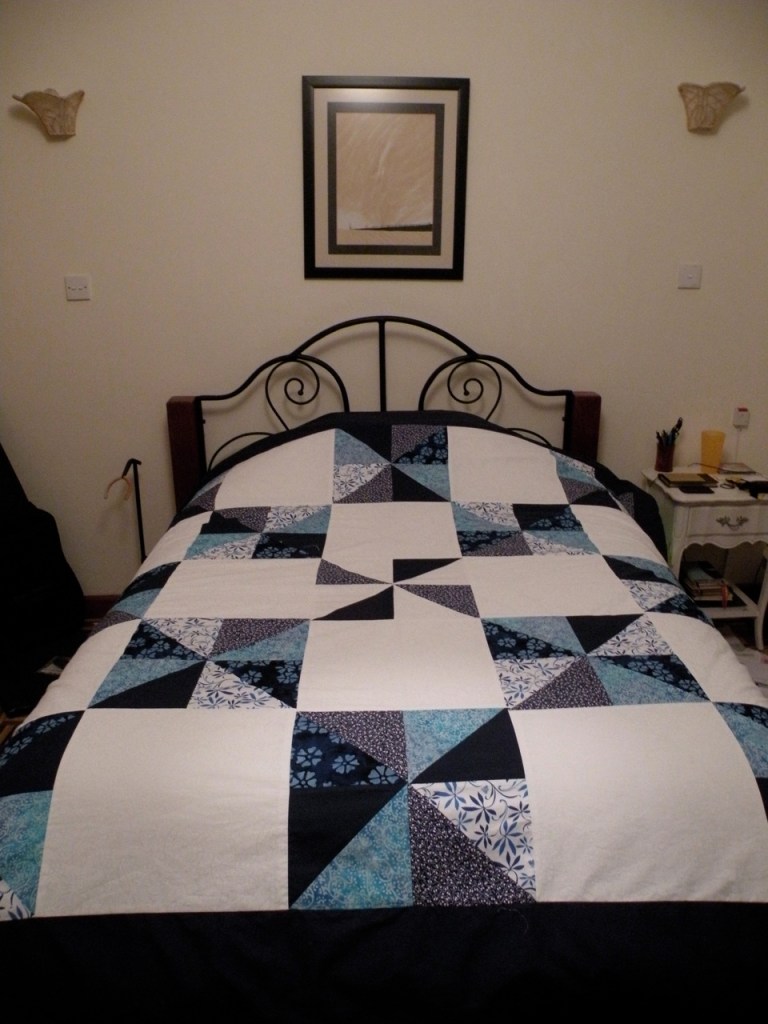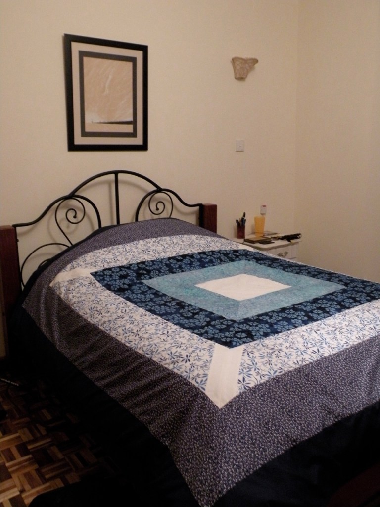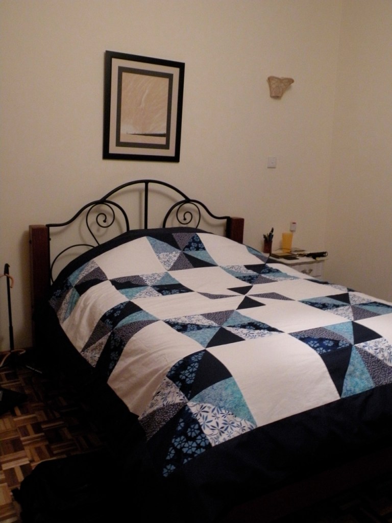 Even more than fabric choices, however, this duvet owes a large part of its existence to the kindness of my cousin and his family who let me take over their dining room table for a few days. Unfortunately, I was so caught up in the sewing that I forgot to take pictures of the process. All I have is the end result. It’s a reversible duvet because sometimes a room needs a subtle change of scenery.