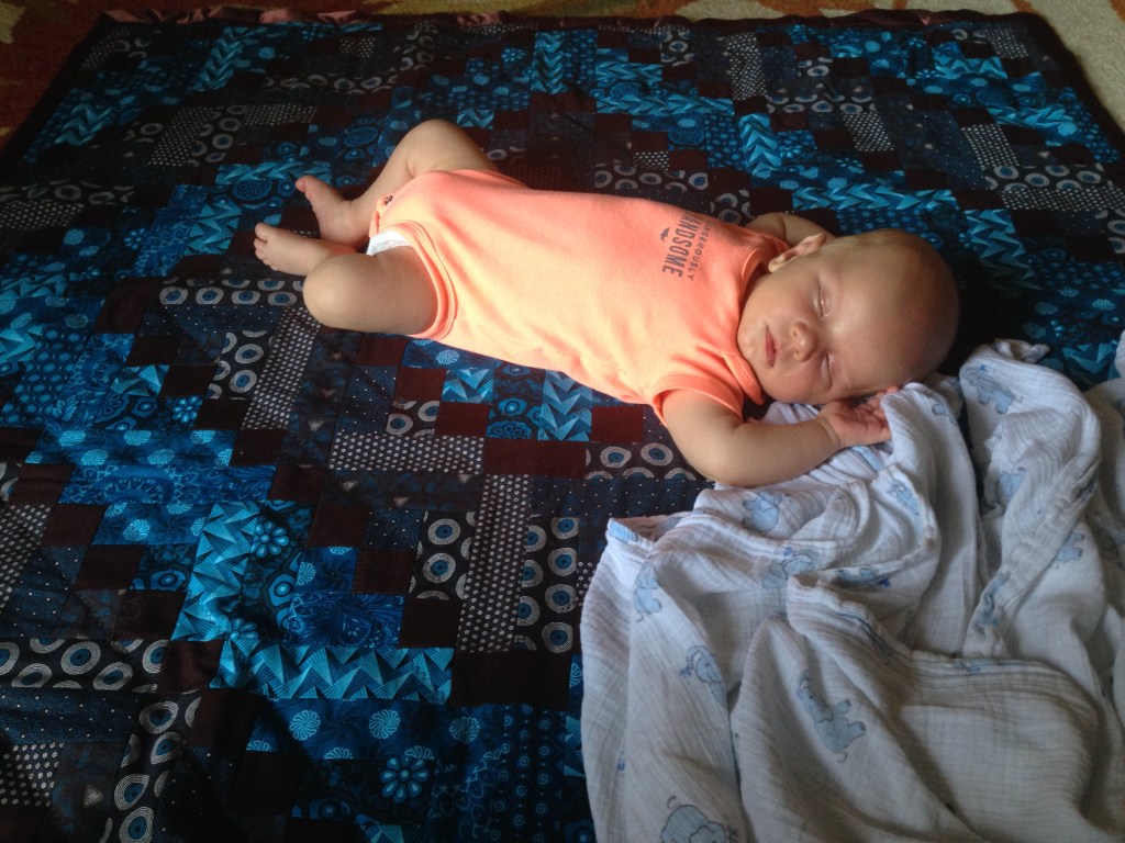 The blanket is for my new nephew – my sister’s 3rd boy. I didn’t think the blanket was that big, but I was surprised when she put him on it for a little nap. So little and so cute!