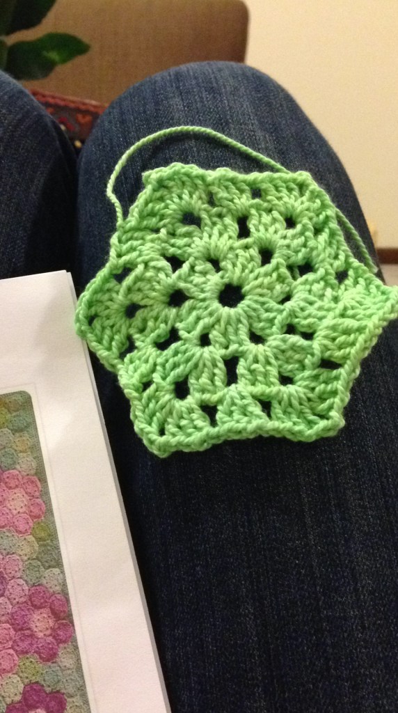 With a new baby named Rosey on the way, and a lot of plane travel ahead of me, I couldn’t help experimenting with a new crochet project. This little blanket was done with a join-as-you-go, hexagonal variation of a granny square. Simple, but sweet.