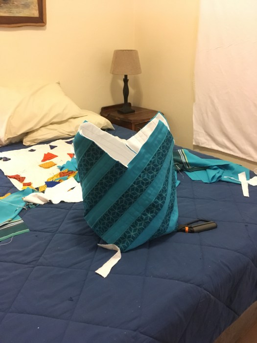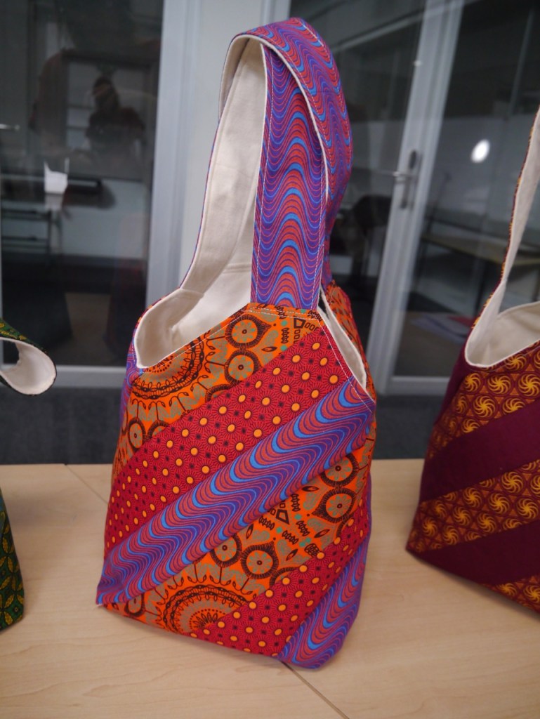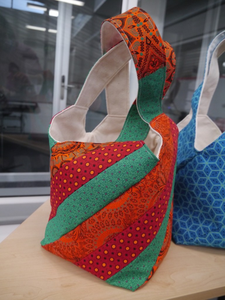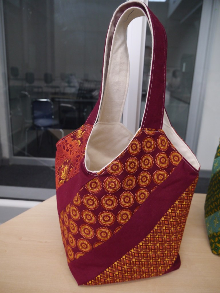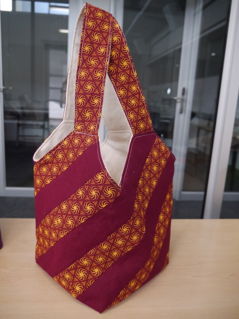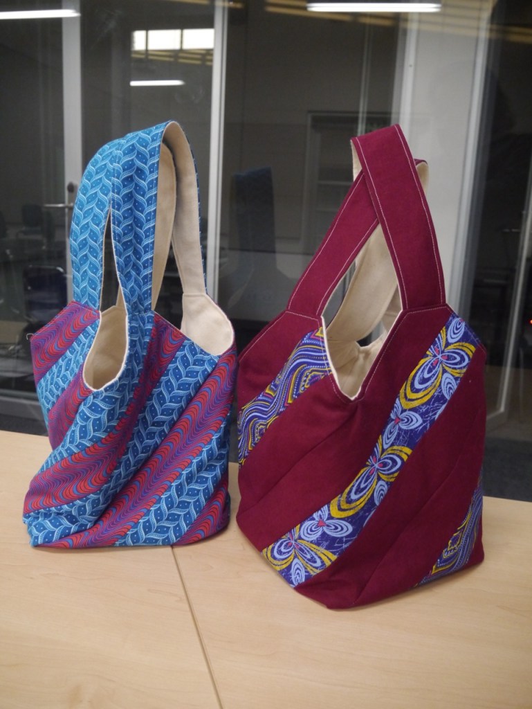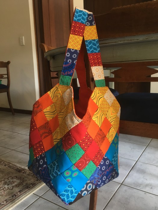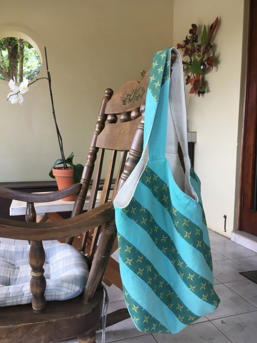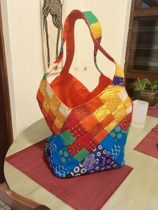 I have a friend who collects bags. Not purses, but bags. Interesting bags from interesting fabrics from interesting places. When she had a big birthday recently, the perfect present seemed obvious. I should make her a bag … but what kind of bag? The fabric had to be South African of course. Beyond that, what shape? What style? So of course I asked the internet. While poking around the interwebs, I discovered the “mondo bag” concept and found this tutorial. Then I went for it! Here’s the mondo bag that started a whole family of mondo bags.