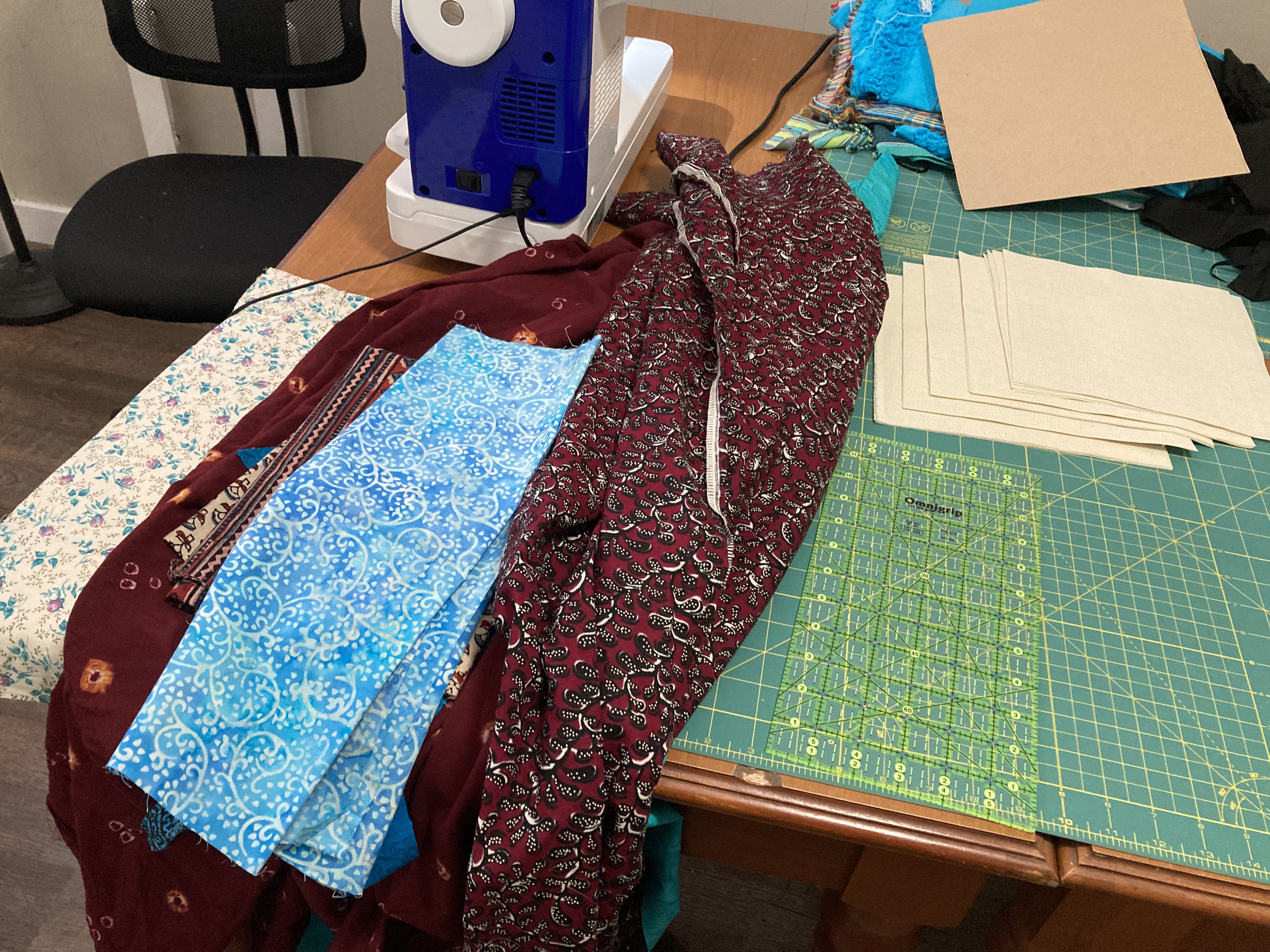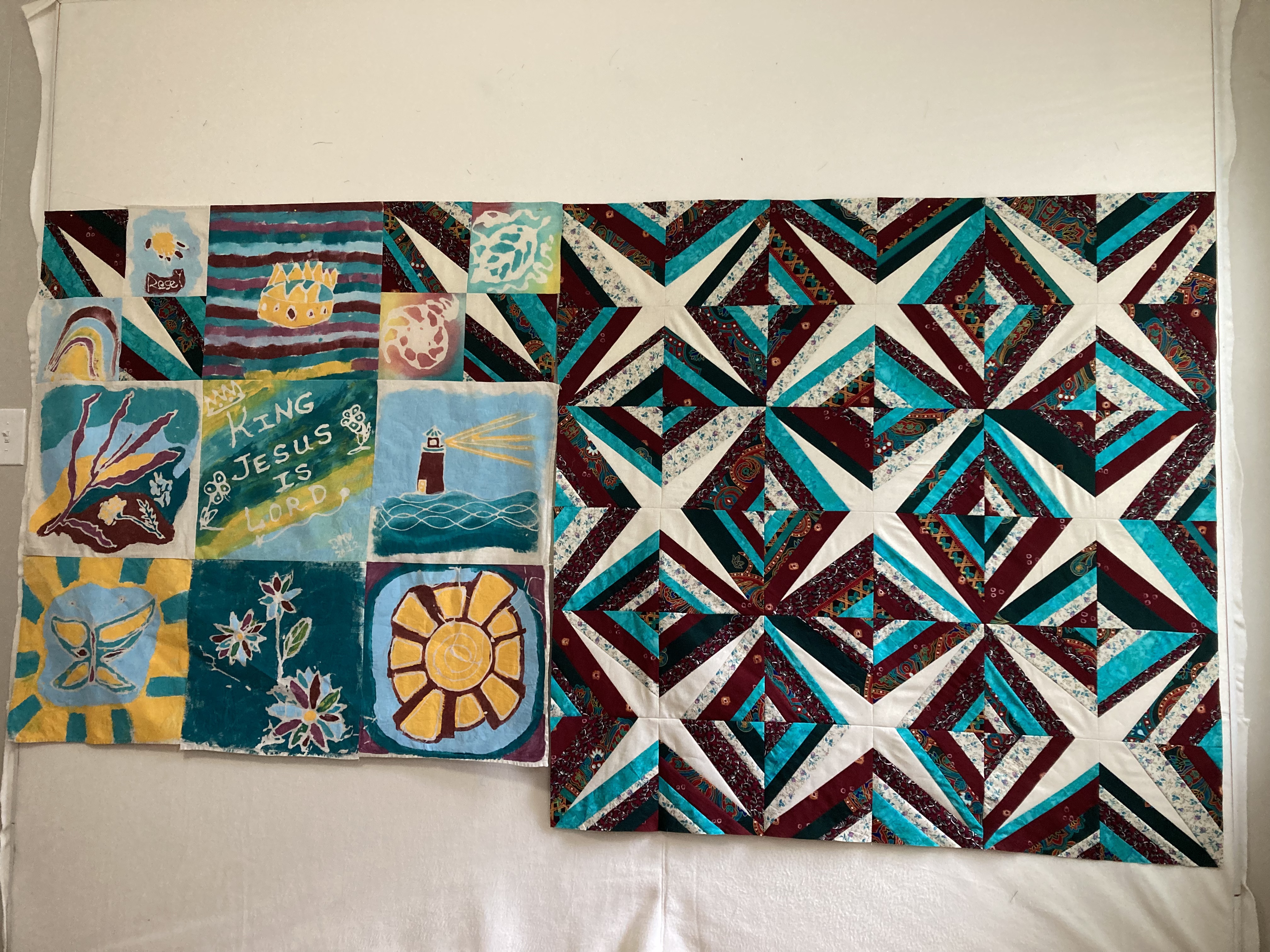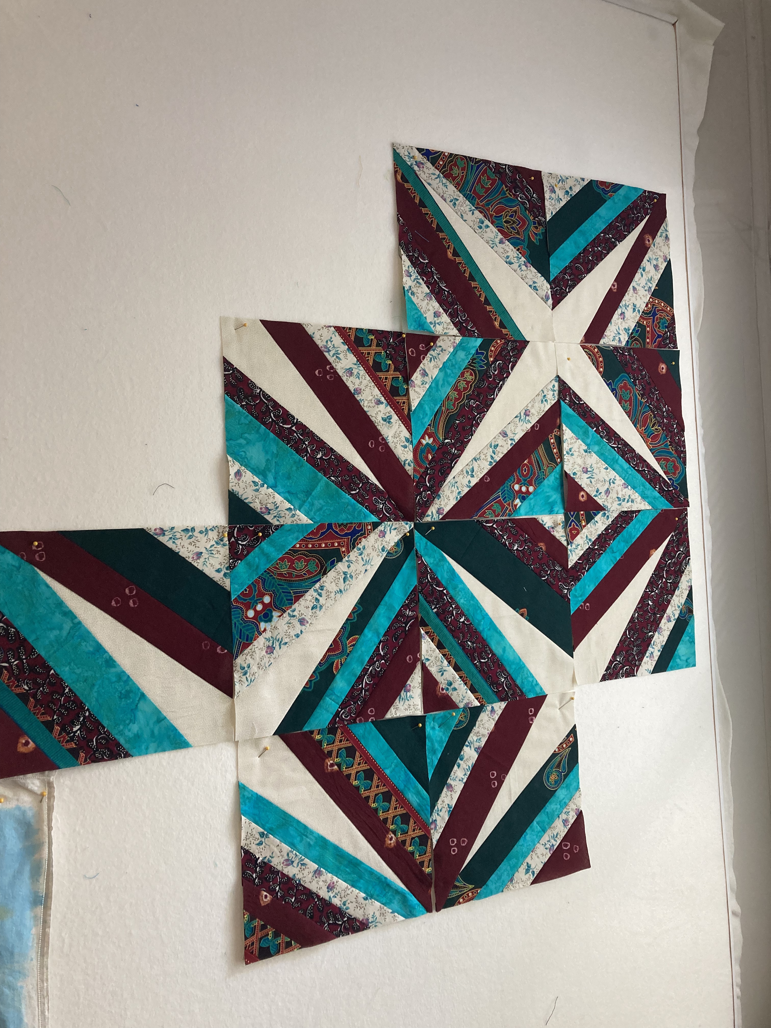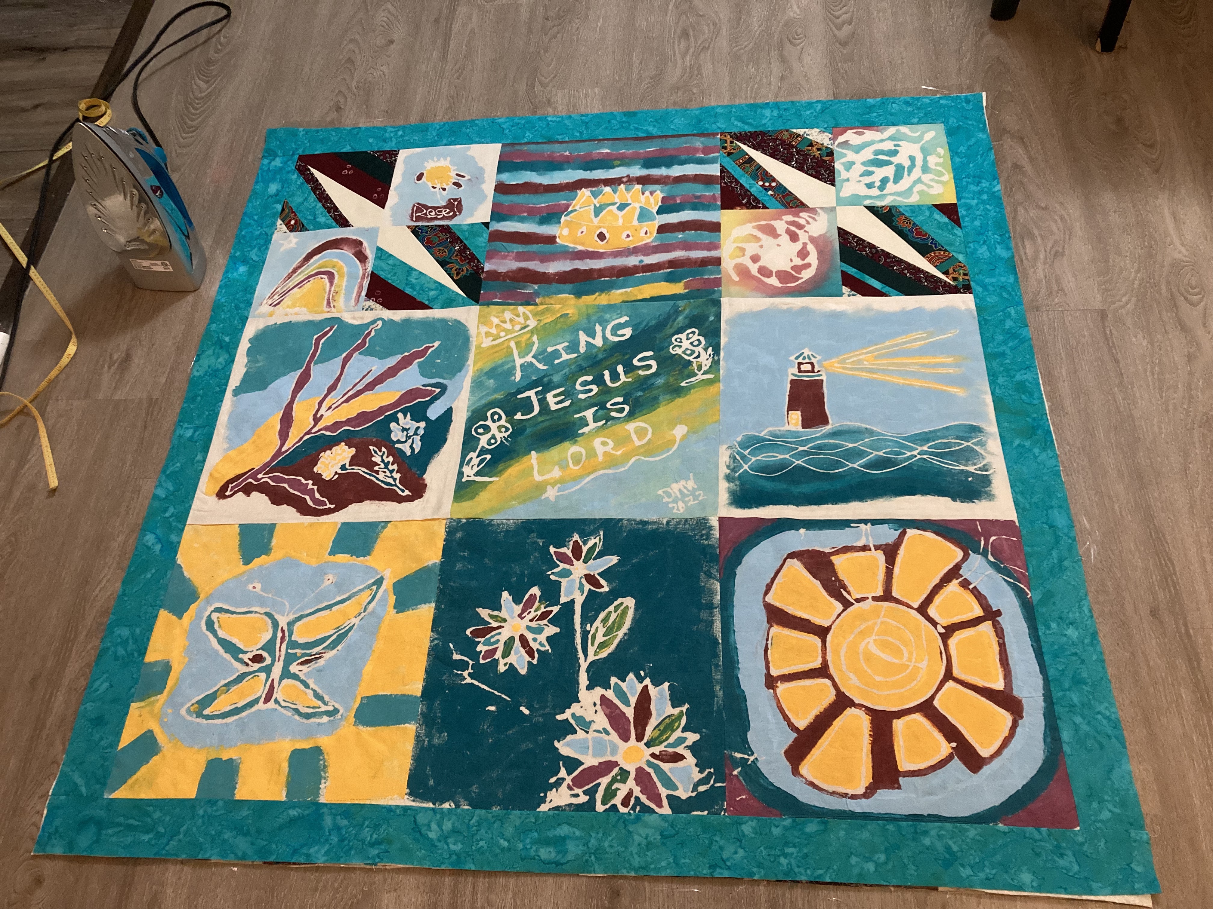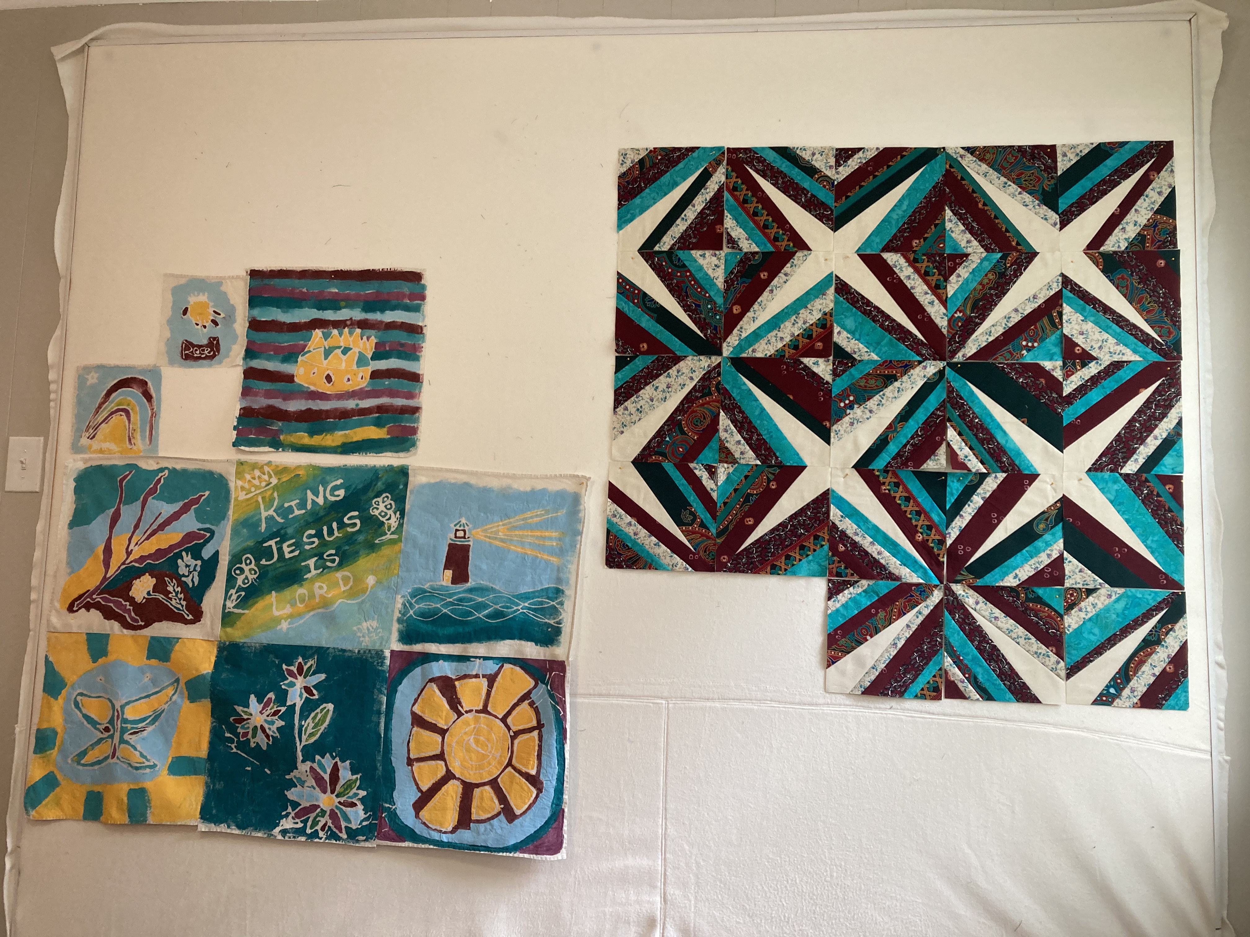 I then took all of the pieces home and stiched them together to make one side of the baby quilt.