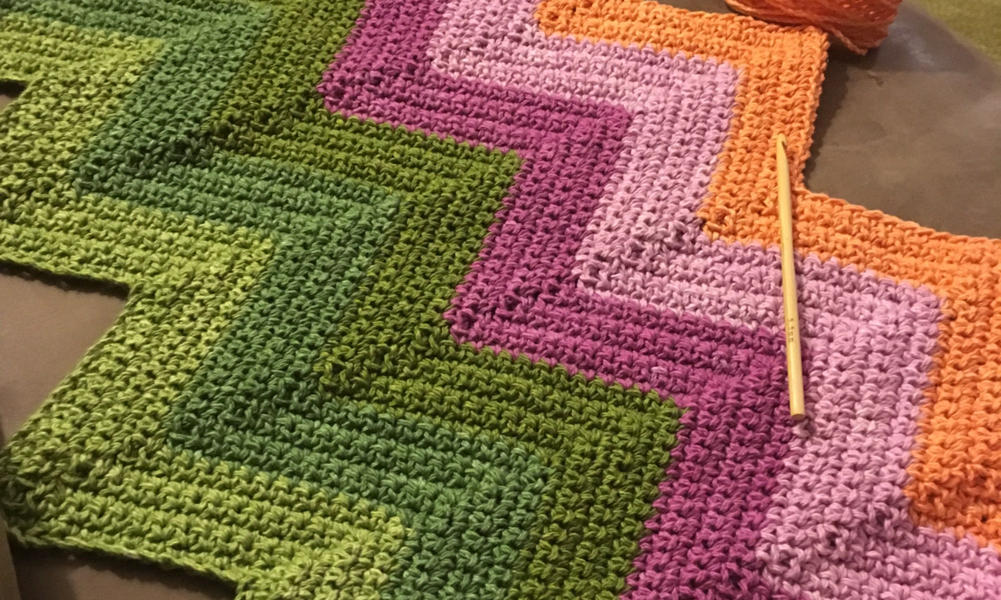 My cousin and his wife had a baby in the spring and I would be traveling in the US all summer. What does that usually mean? Crochet! Easy to pack, carry, and finish on the road. I chose a zigzag pattern only because I had never done one before and was curious how it worked.