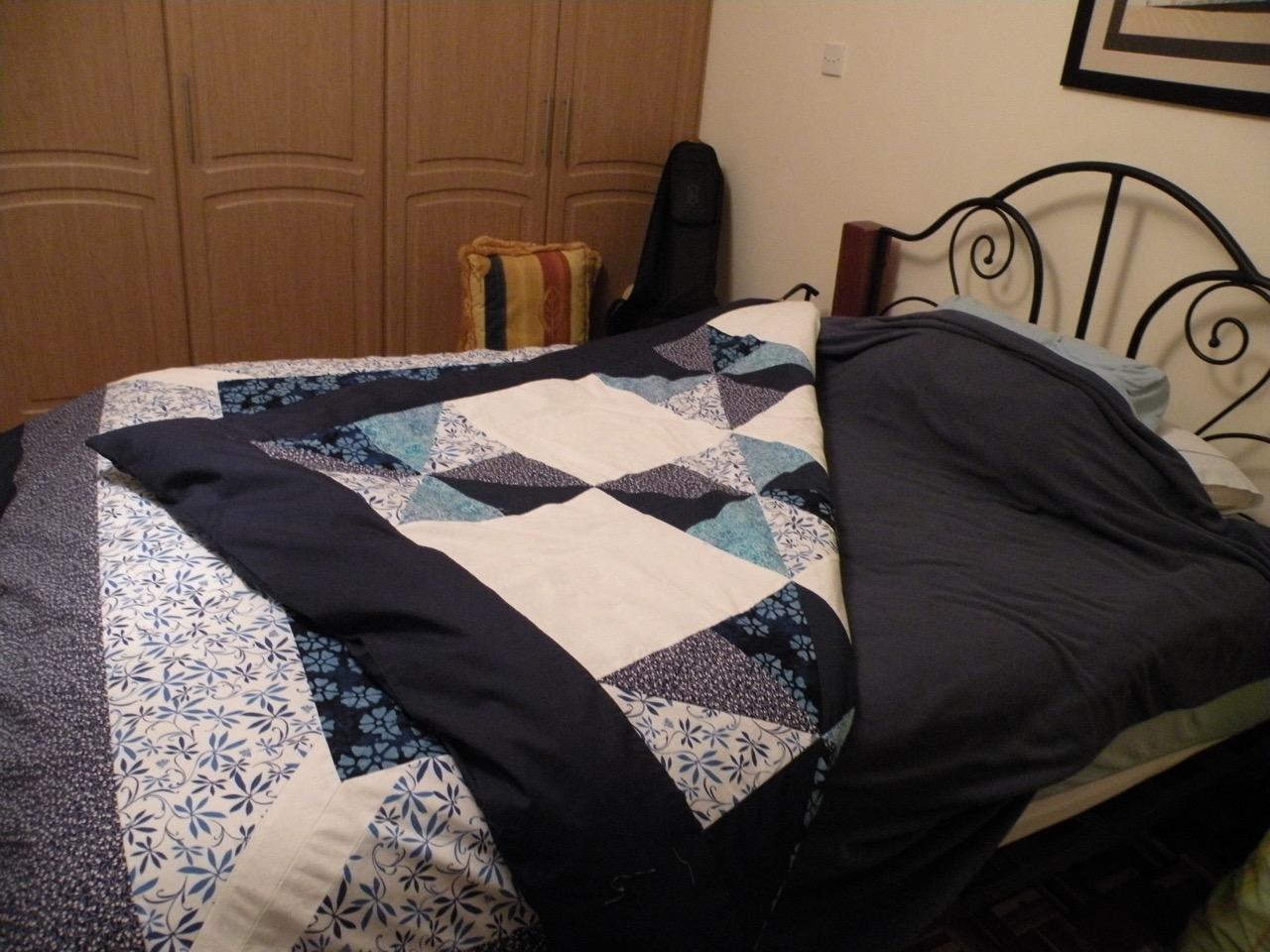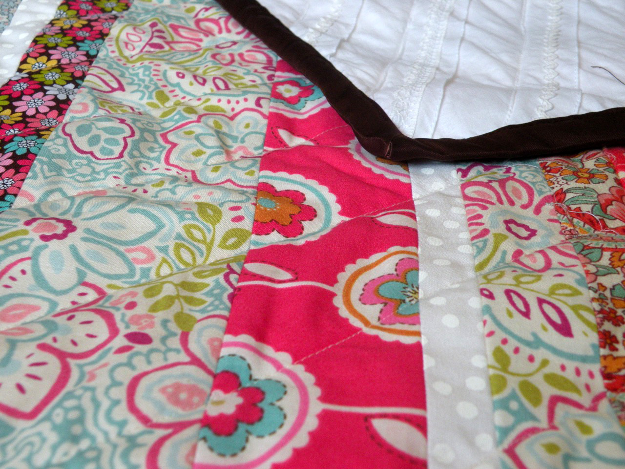My sister-in-law and I made this little baby blanket together for her eldest (and the first of my many nieces and nephews). The pattern is simple: rectangular strips of varying widths quilted diagonally. I love the color palate, but I like contrast of texture the most. The back fabric is textured on a diagonal and …